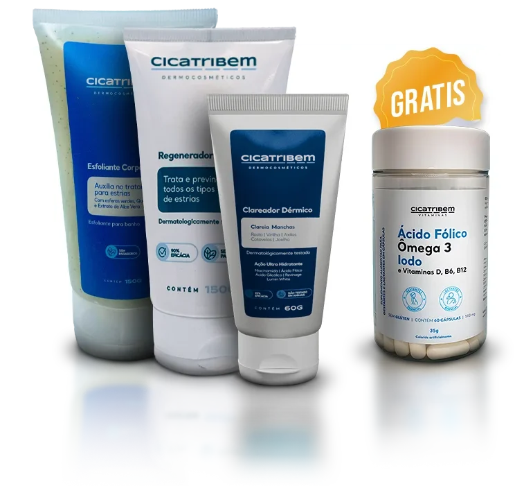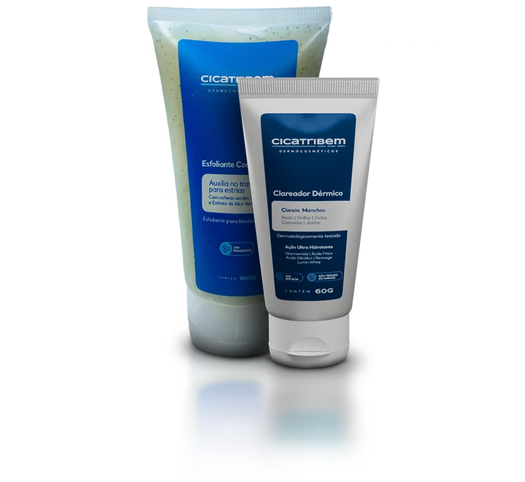 1 Esfoliante + 1 creme Antiestrias + 1 Clareador